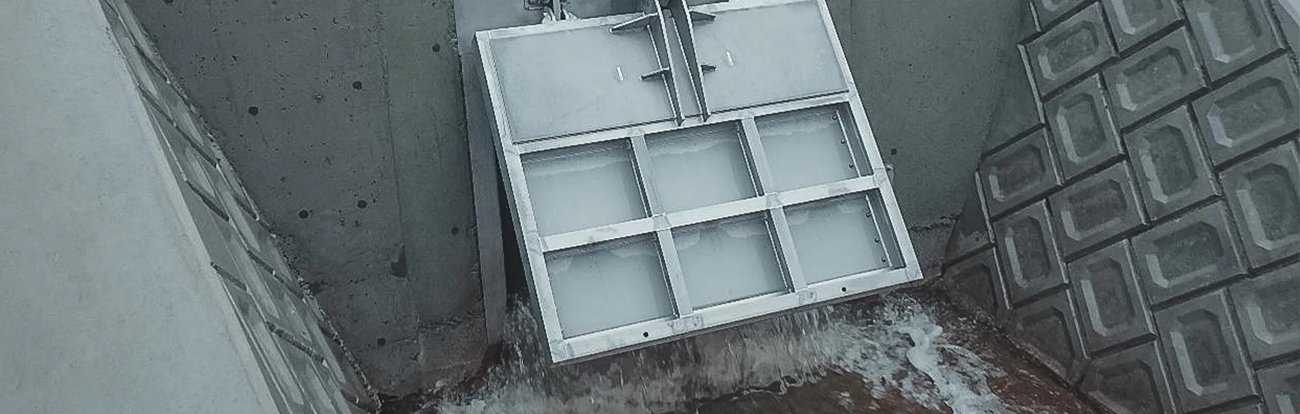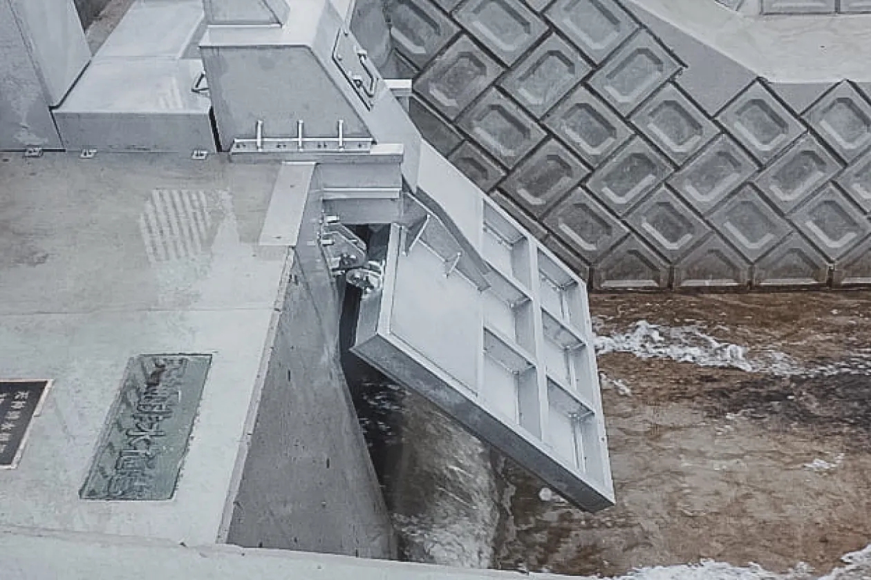 従来形フラップゲート形式において「円滑な排水性」と「確実な操作性」向上を目的として開発した自動ゲート設備です。