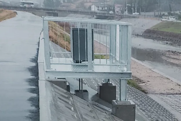 現在、治水用の水門設備は、操作管理者の担い手不足、洪水や高潮、高波に対する安全確保などの観点より、ゲート開閉の自動化が求められています。